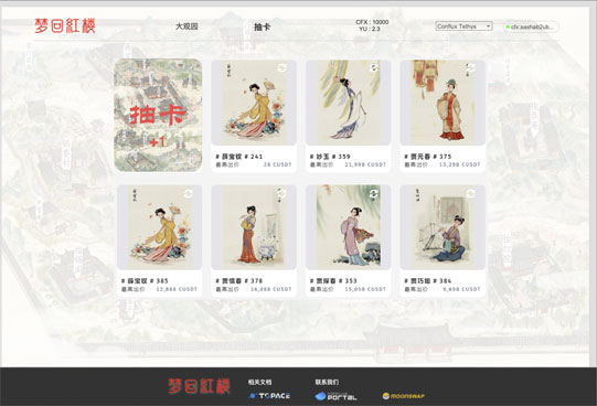 藍藍設(shè)計和長期客戶一起合作,設(shè)計開發(fā)了這個網(wǎng)站。團隊人員繪制了紅樓十二釵的古風插畫,將其中金陵十八釵的人物卡片作為NFT收藏卡片出售。通過古典文學和現(xiàn)在技術(shù)的結(jié)合,為創(chuàng)作者提供了更多的自由和經(jīng)濟機會,同時也給予了收藏家更多的選擇和交易便利,目前卡片已全部售出。