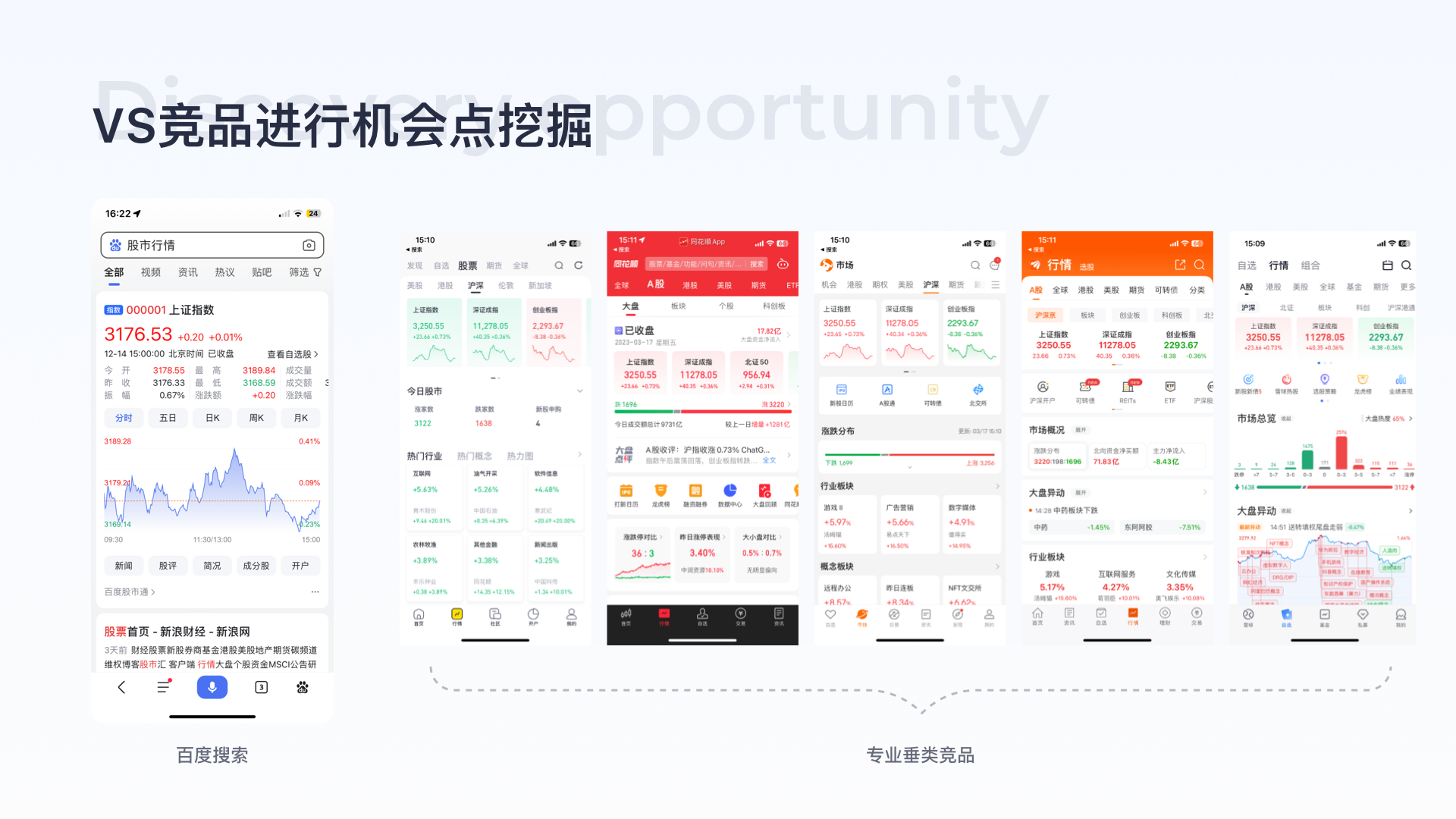 競(jìng)品分析:搜索競(jìng)品包括今日頭條、夸克、QQ瀏覽器、必應(yīng)、谷歌均以滿足用戶查找需求為主,信息以純文本形式展現(xiàn),消費(fèi)成本較高,且未滿足用戶潛在的開(kāi)戶需求,垂類(lèi)競(jìng)品開(kāi)戶頁(yè)對(duì)流程、材料介紹均不完整、缺少完整的介紹及問(wèn)題解答。