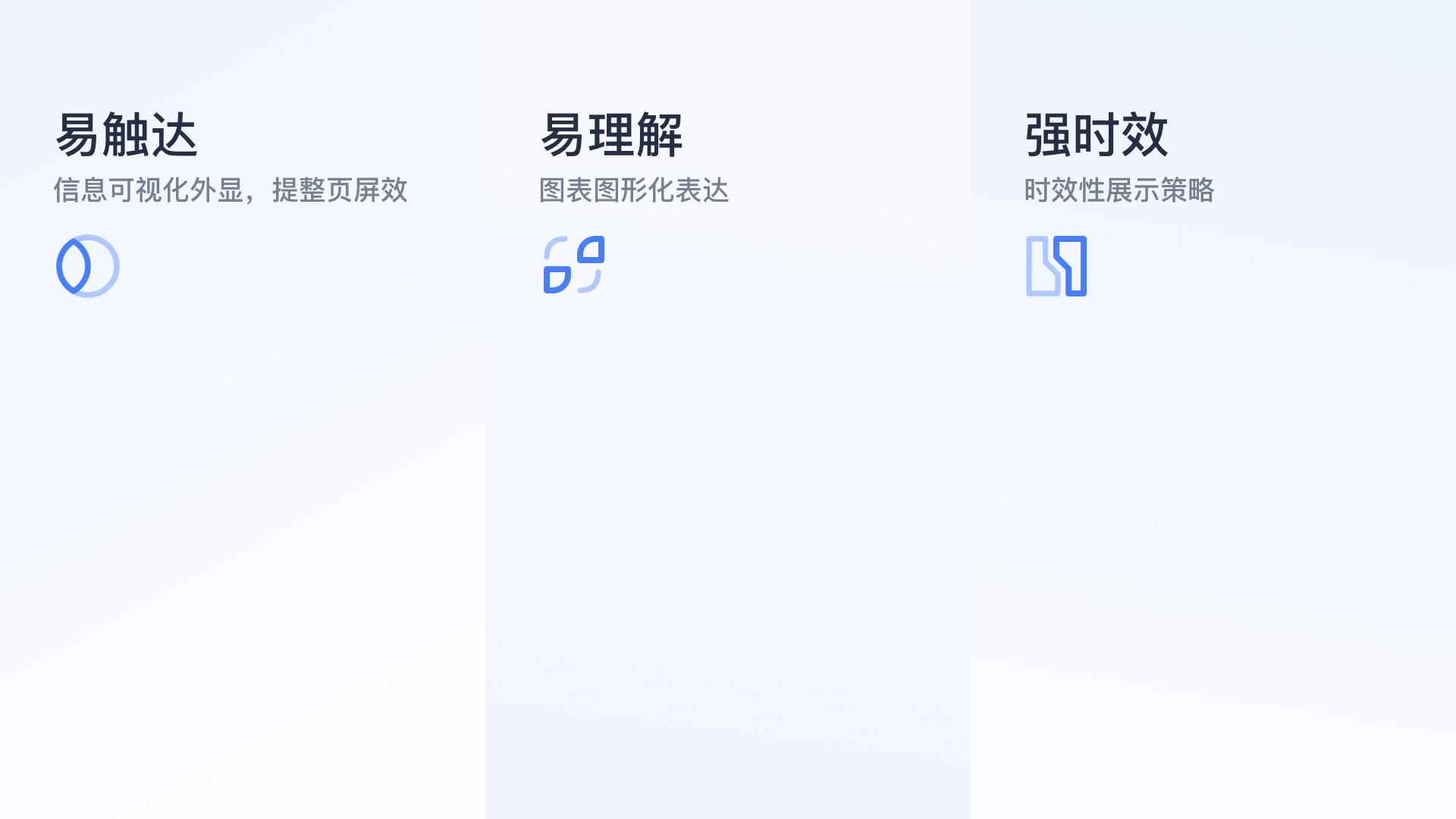 易理解:通過(guò)數(shù)據(jù)結(jié)構(gòu)化、圖形可視化、標(biāo)簽化字體等用戶更易理解的設(shè)計(jì)表達(dá)語(yǔ)言,幫助用戶更簡(jiǎn)單快捷的獲取信息。
