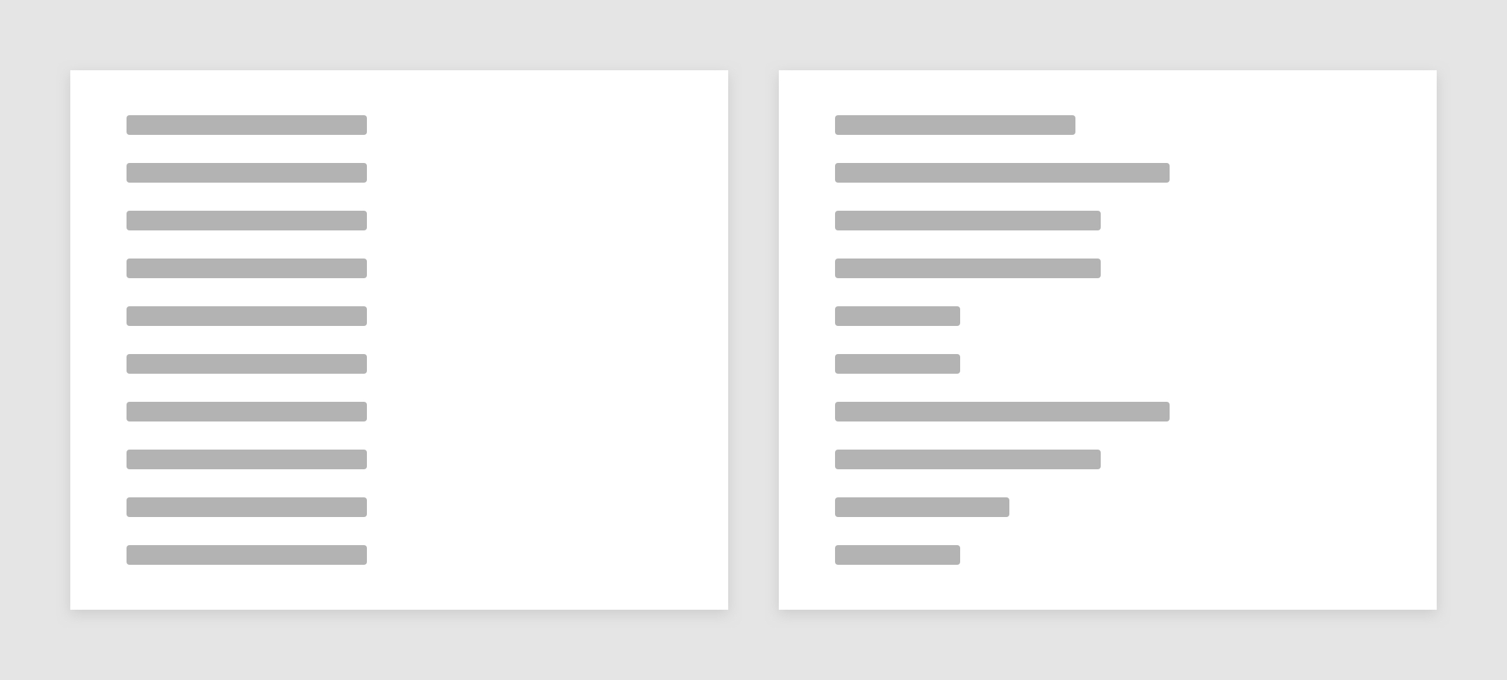 在實際業(yè)務中,設計師常常習慣把每個表單字段都設置成相同的寬度,在視覺效果上看感覺會比較統(tǒng)一,但是這種做法實際上體驗欠佳。字段的寬度應該向用戶暗示所需輸入內容的長度從而減輕判斷負擔。在Ant Design 4.0 系列分享的文章《整齊劃一?不如錯落有致》中分析到錯落有致的排版表現似乎比整齊劃一的左圖更舒適,因為在視覺上我們更容易將右圖的空間和內容視為一個和諧的整體。但左圖過度的對齊導致暗示隱性的截斷,我們慣性視覺會產生表單字段右側空間缺了一大塊的錯覺。