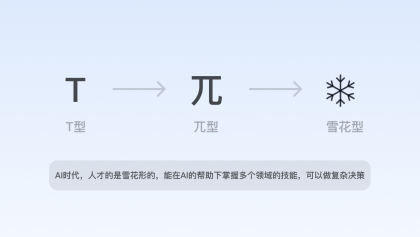 在人工智能時代,部分重復(fù)性、初級的設(shè)計需求將被替代,設(shè)計師乃至互聯(lián)網(wǎng)職場人的能力維度將隨之會有所改變,善用AI的綜合能力素養(yǎng)變?yōu)閯傂?,在能力維度上接近于“雪花型”。