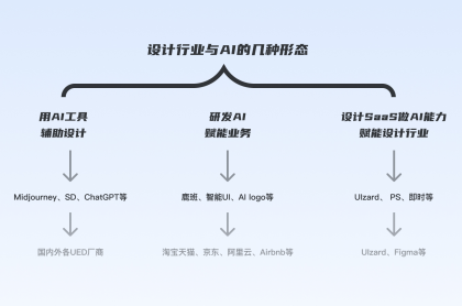 其實目前設(shè)計團(tuán)隊或設(shè)計行業(yè)與AI的關(guān)系,可以歸納為3種形態(tài):