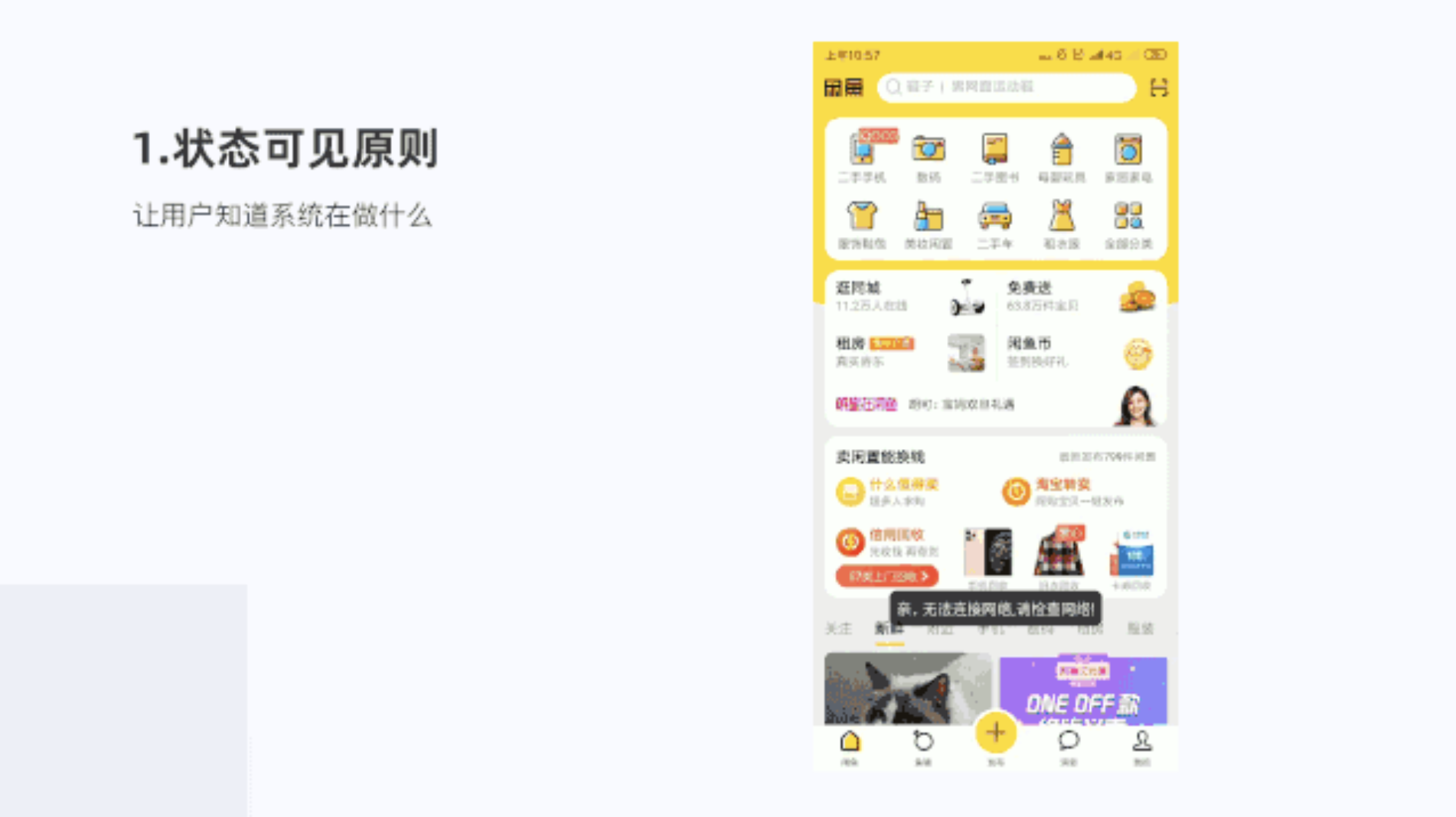 今天我們主要從用戶體驗的部分原則來看閑魚,主要以產(chǎn)品視覺設(shè)計四大原則、交互設(shè)計十大可用性原則、情感化設(shè)計來看閑魚