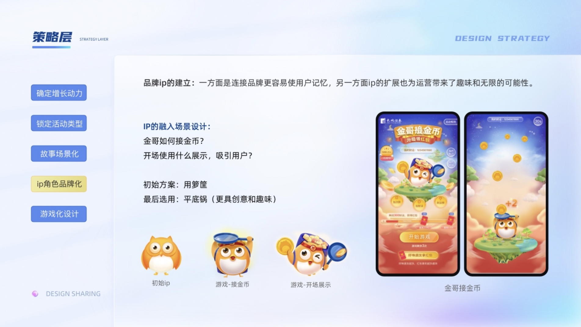 策略層:1、確定增長動力;2、鎖定活動類型;3、故事場景化;4、IP角色品牌化;5、游戲化設(shè)計