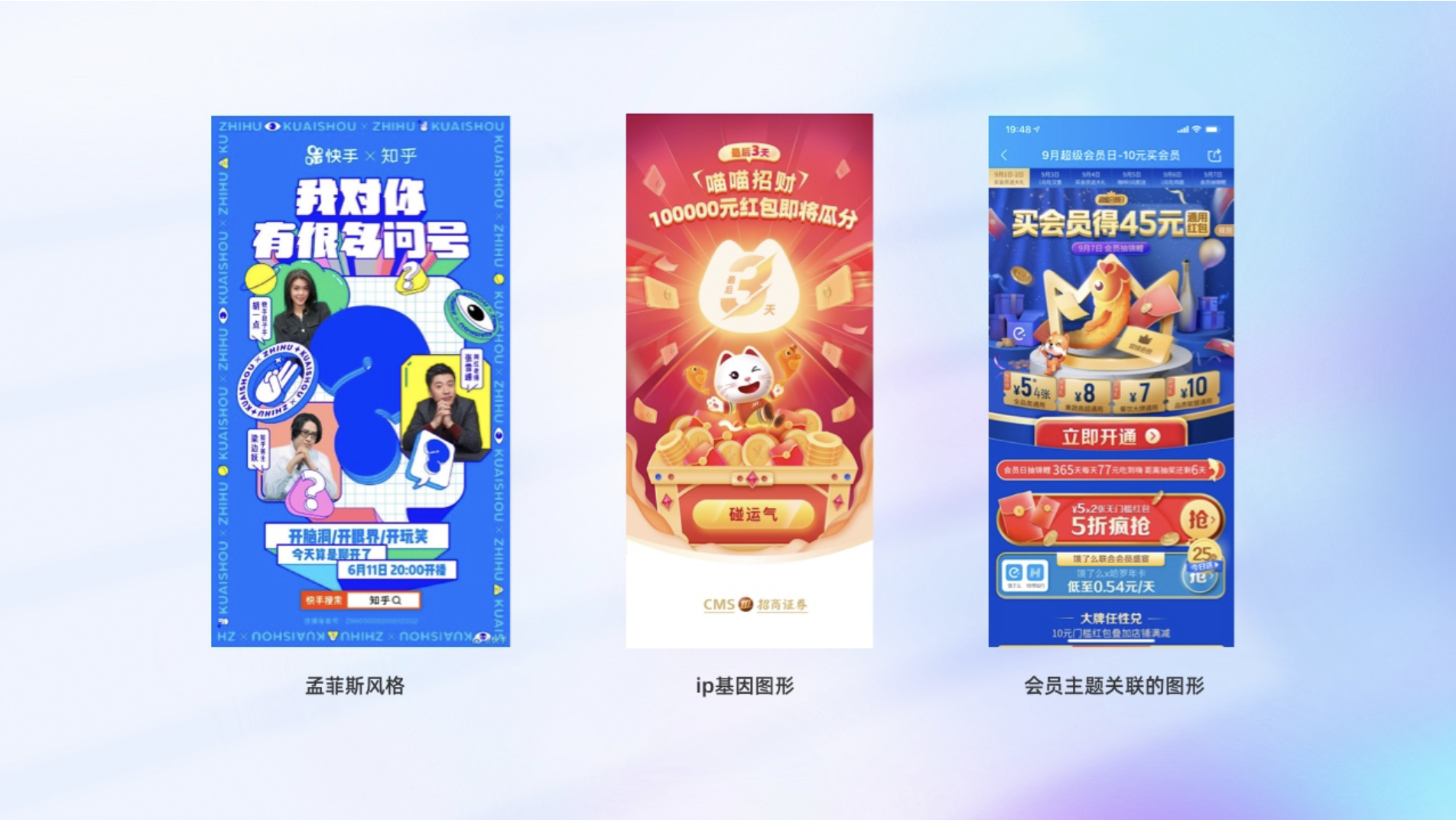 b、品牌、ip、logo基因圖形:品牌圖形、ip、logo是最具有產(chǎn)品視覺識別性的,從中提取品牌基因圖形,即簡單,又可以有效的與產(chǎn)品品牌掛鉤,抓住用戶心智塑造品牌認(rèn)知。