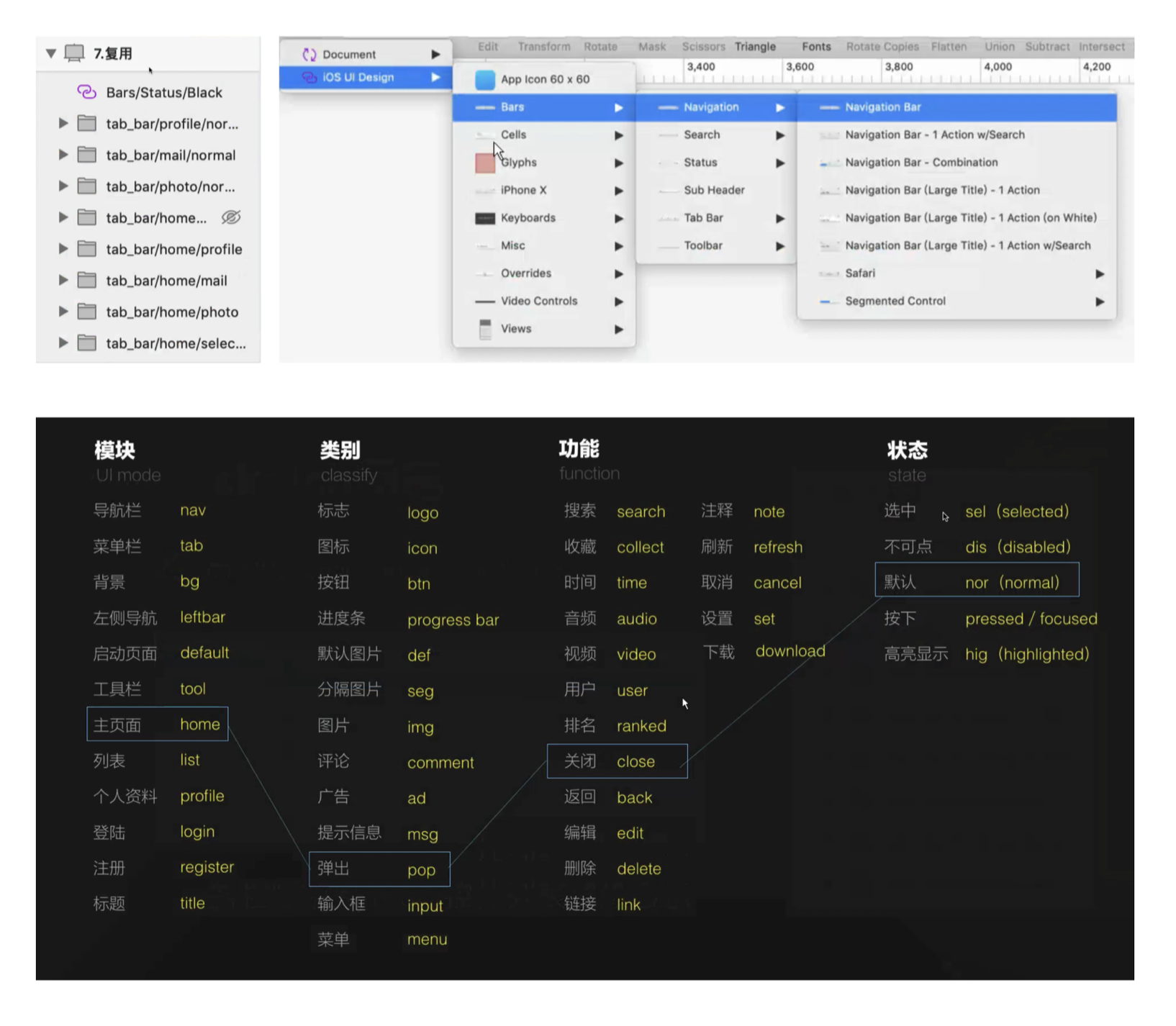 • 微信底部導(dǎo)航示例:可按 “tabbar_contacts”“tabbar_discover”“tabbar_me” 等命名。