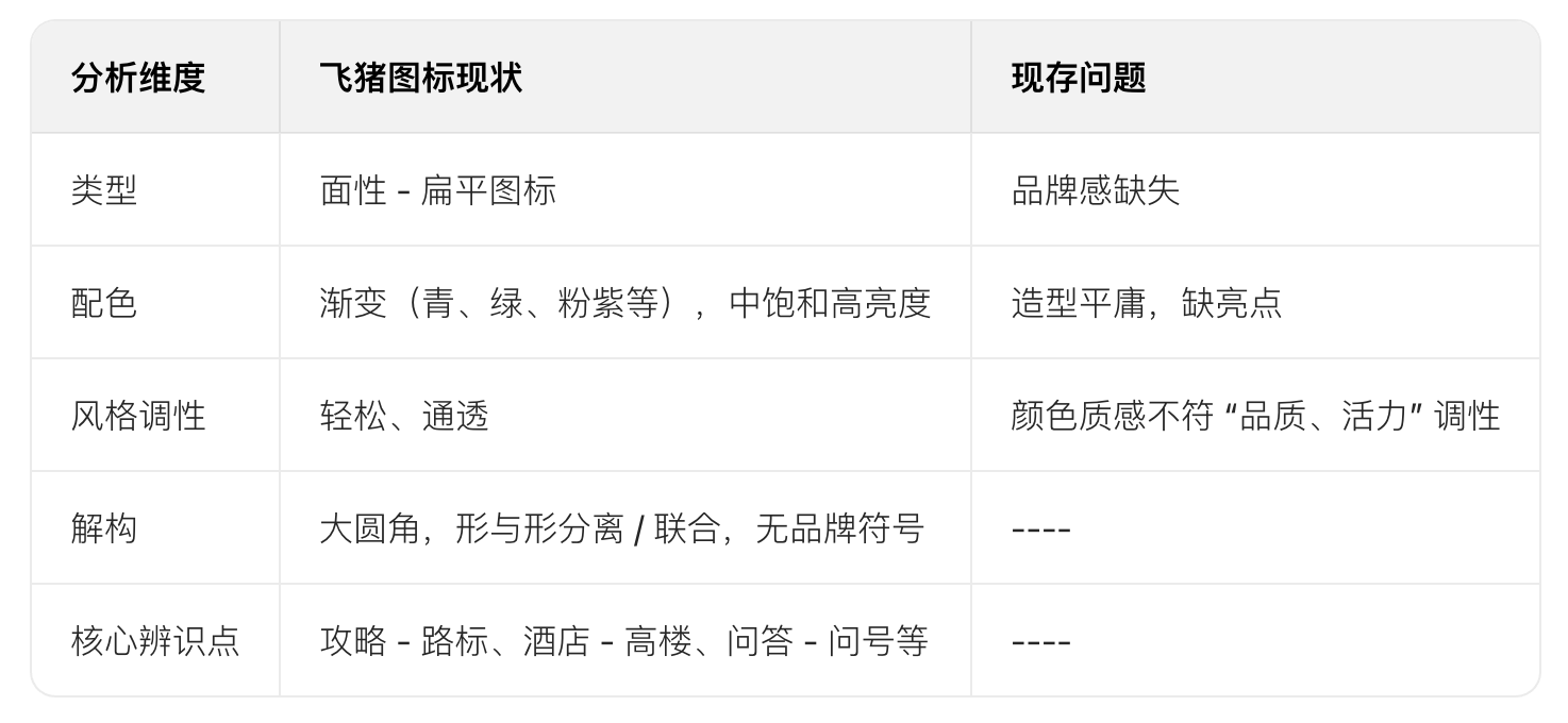 - 提取品牌基礎(chǔ)形(如飛豬傾斜矩形),簡(jiǎn)化后融入圖標(biāo),避免 APP 同質(zhì)化(如長(zhǎng)視頻 APP 去 logo 難區(qū)分案例)。