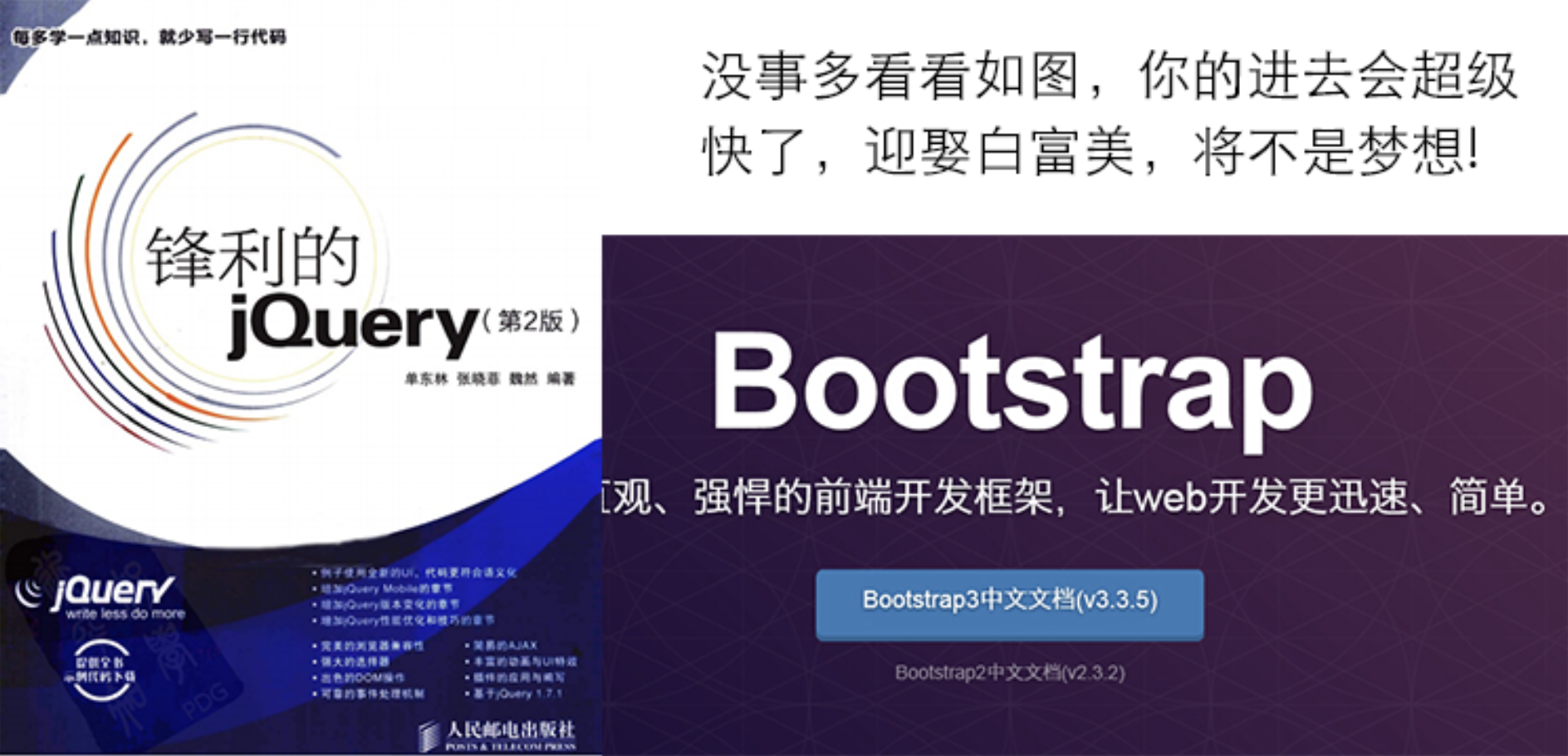 • 研究主流趨勢:要了解主流趨勢,比如懂一些 HTML5 相關知識。若不懂代碼,當程序員表示設計無法實現(xiàn)時,可能導致辛苦設計的內(nèi)容和思路需要重新改版。多學習相關知識,如了解《鋒利的 jQuery (第 2 版)》、Bootstrap 等前端開發(fā)框架相關內(nèi)容,有助于提升設計的 “高大上” 程度,避免默默聽從他人不合理的指揮。