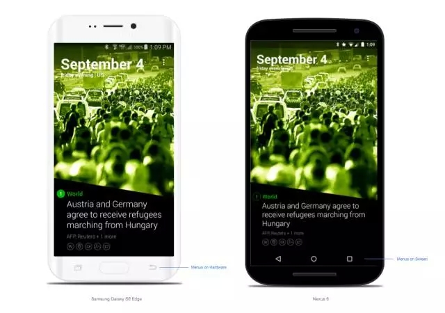 典型的安卓設(shè)備在屏幕上有特定的Home, 返回和菜單按鍵。然而,三星是以實體按鍵的形式應(yīng)用在他們的硬件設(shè)備上的。這讓一切又變得些許不同。確保你的排版能在三星和其它設(shè)備上都說得通。
