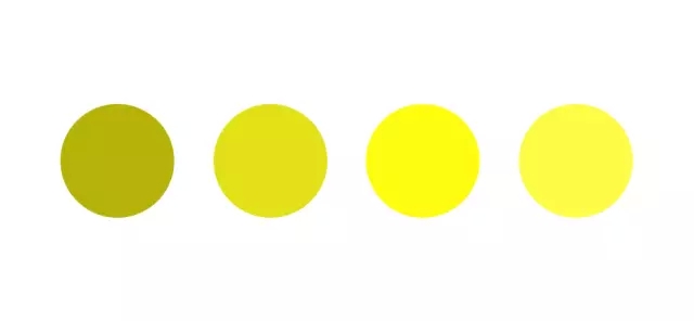 泛綠的黃色偏冷,給人感覺冷漠。在原黃中加入白色和黑色的話,黃色本身的明亮的光感和暖意就會(huì)消失,變成偏冷的色彩。