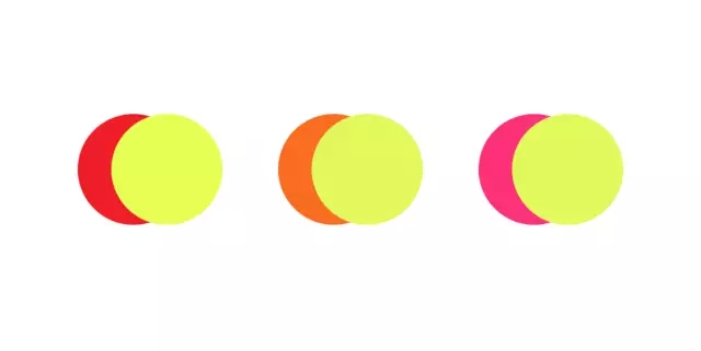 比起100%的紅色,冷黃色與深紅色或淺紅色,或者泛紫的紅色搭配起來更合適。這樣的配色,呈現(xiàn)出的不是柔和的自然的色彩感覺,而是認(rèn)為創(chuàng)造的豁亮感。