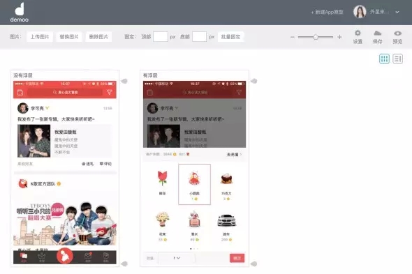 最后,聽說很多試用過的朋友都在詢問,如何在Demoo中模擬浮層的效果,Demoo其實更擅長的是頁面之間的跳轉(zhuǎn),那么如何模擬呢?這里給大家一個小技巧。