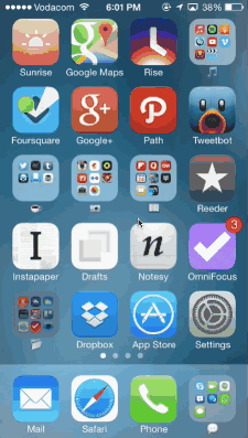 Apple iOS系統(tǒng)的UI設(shè)計(jì)中就很好的利用了這些有意義的過渡動(dòng)效。下面的案例中,用戶點(diǎn)擊文件夾或者APP,圖標(biāo)當(dāng)大擴(kuò)展到整個(gè)屏幕,展現(xiàn)出細(xì)節(jié)和詳情。