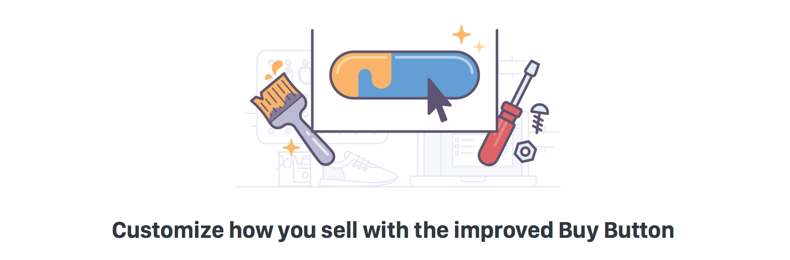 這個(gè)元素與那個(gè)元素融合,就能表達(dá)我們想要傳遞的內(nèi)容。可能這類比喻使用起來(lái)需要更老道的經(jīng)驗(yàn),但在產(chǎn)品插畫里的確更受重視,或者說(shuō)一般設(shè)計(jì)都會(huì)考慮它,因?yàn)樗亲層脩臬@知你的產(chǎn)品或功能賣點(diǎn)的捷徑。如下圖所示,沒(méi)錯(cuò),你知道我們提供了“購(gòu)買”的按鈕,但瞧瞧旁邊擺放的畫筆,基于對(duì)畫筆的了解,你就會(huì)明白你能定制“購(gòu)買”按鈕的顏色。將刷子的功能與按鈕的功能混合起來(lái),刷子可以自定義顏色,因此我們的按鈕也可以。與品牌和營(yíng)銷設(shè)計(jì)一樣,這種比喻在圖標(biāo)設(shè)計(jì)中也時(shí)常出現(xiàn)。