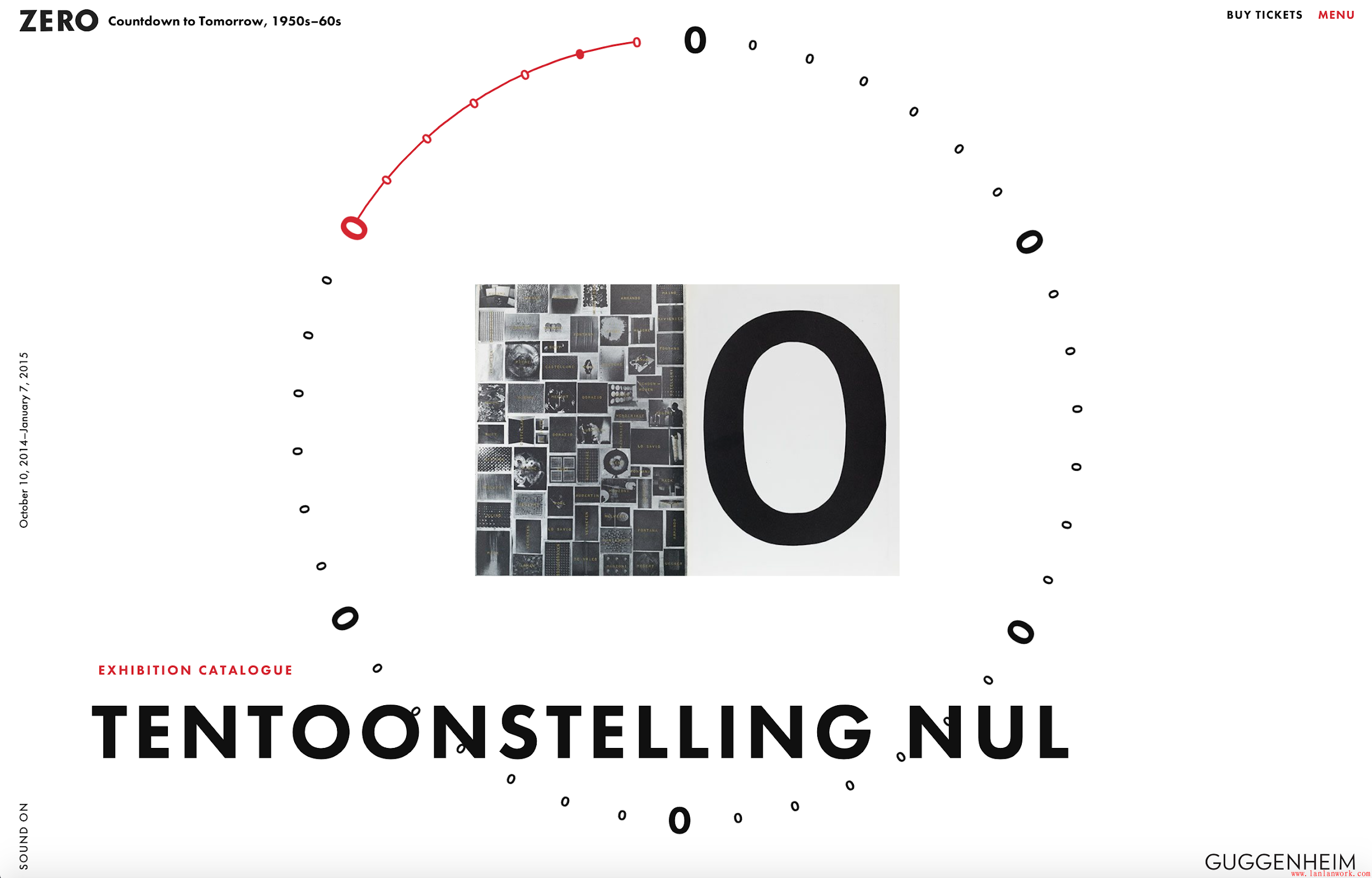 由于其在集體的創(chuàng)造性工作中的重要性,為古根海姆德國(guó)藝術(shù)家組織ZERO展覽創(chuàng)建的網(wǎng)站使用聲音作為大氣背景,并且作為導(dǎo)航網(wǎng)站時(shí)的反饋形式。大膽的鈴聲建立代表主題開(kāi)頭的部分,而第三級(jí)項(xiàng)目則在后臺(tái)點(diǎn)擊。