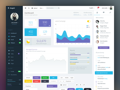 藍(lán)藍(lán)設(shè)計(jì)是一家專注而深入的設(shè)計(jì)公司,致力于提供有效、經(jīng)典卓越的設(shè)計(jì),在工作中,目前有很多客戶選擇購(gòu)買了Bootstrap ui的框架,客戶們選擇Bootstrap的原因是因?yàn)樗目蚣苤性S多組件已經(jīng)寫好,js等很方便直接引用,程序員們只需直接用就可以,可以把工作的重心放在后臺(tái)程序的開(kāi)發(fā)上。但是Bootstrap ui只是提供了各種元素,無(wú)法直接使用,需要進(jìn)行二次設(shè)計(jì)和開(kāi)發(fā)。藍(lán)藍(lán)設(shè)計(jì)做了許多這樣的工作,包括整合客戶的業(yè)務(wù)和需求重新設(shè)計(jì)頁(yè)面的風(fēng)格和布局,最后切圖修改Bootstrap ui的css,這里是我們工作前收集的國(guó)外各種風(fēng)格扁平化后臺(tái)管理界面,做成系列欣賞,與大家分享~~~~