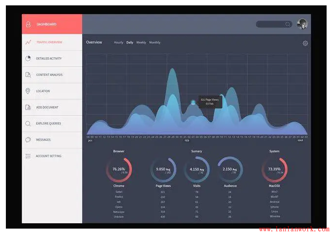 優(yōu)點:可以通過布局建立良好的視覺層次,深層次地反映內(nèi)容,而且視覺吸引力強,給人以高端的視覺感受。