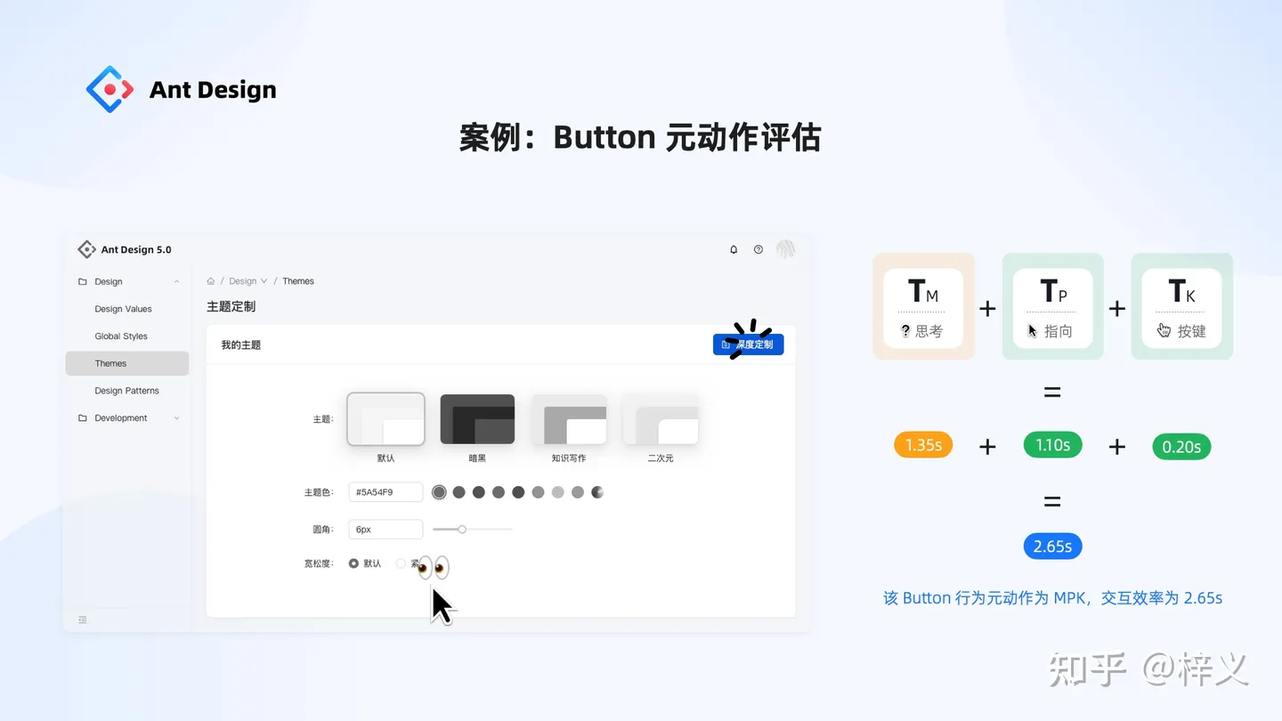 如此,我們定義了按鈕的交互行為序列為 MPK。更進(jìn)一步,如果我們能測(cè)得這些元?jiǎng)幼鞯慕换バ?,我們就能得到按鈕這個(gè)組件的交互質(zhì)量了。