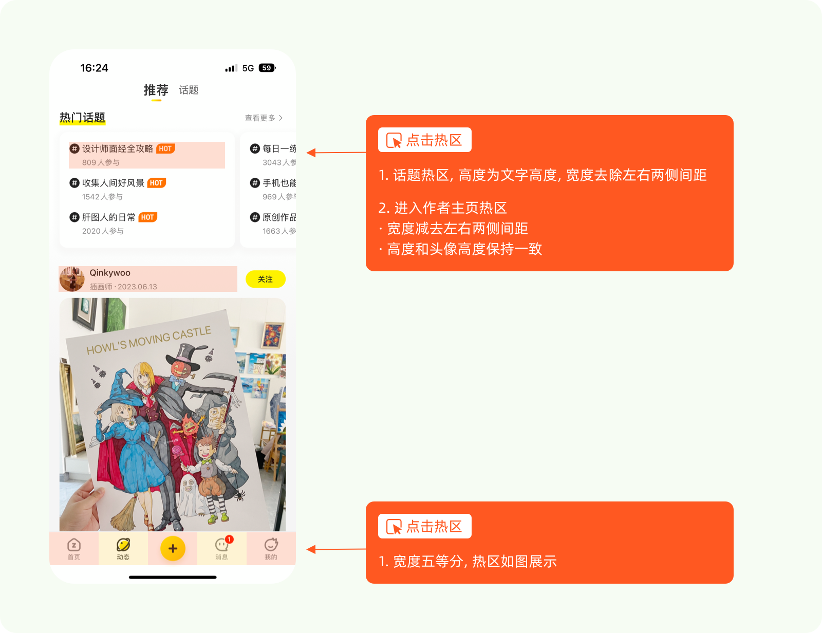 點(diǎn)擊熱區(qū)是指用戶在界面上最容易點(diǎn)擊的區(qū)域??梢詷?biāo)注出點(diǎn)擊熱區(qū)的位置、大小和形狀,以便團(tuán)隊(duì)成員在實(shí)現(xiàn)交互時(shí)更好地考慮用戶體驗(yàn)和操作習(xí)慣。