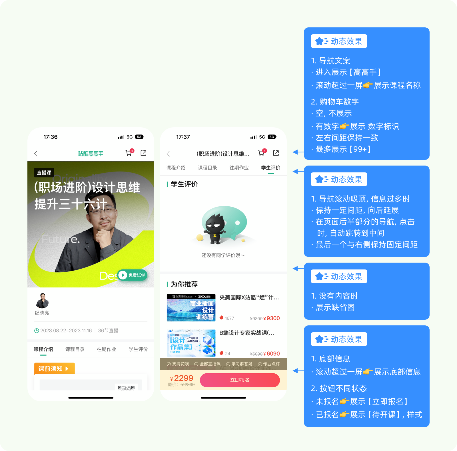 (4)動(dòng)效信息標(biāo)注,實(shí)現(xiàn)方式、觸發(fā)條件、持續(xù)時(shí)間、動(dòng)畫路徑等