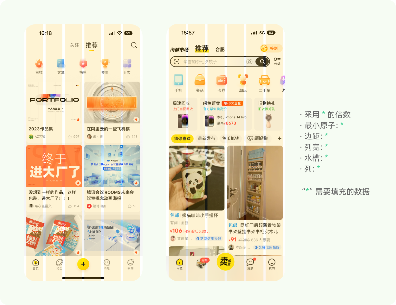 柵格的規(guī)則定義了一套底層的、統(tǒng)一的測(cè)量單位,當(dāng)設(shè)計(jì)團(tuán)隊(duì)內(nèi)對(duì)此達(dá)成共識(shí)時(shí),可以避免因屏幕適配、比例換算產(chǎn)生的像素偏移,適配多種屏幕,提升設(shè)計(jì)稿件中元素屬性的一致性和規(guī)范化。