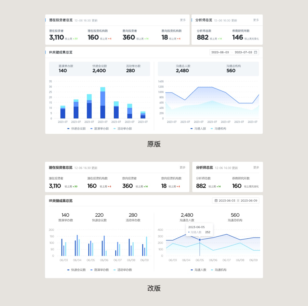 但重要不代表需要過度傾注和堆疊視覺元素,過度的設(shè)計(jì)會(huì)讓界面看起來有 “飛機(jī)” 敢,不僅不真實(shí)的印象產(chǎn)生了,還會(huì)顯得業(yè)余不夠自信。同時(shí)任何項(xiàng)目中表盤頁過度設(shè)計(jì)都會(huì)對(duì)整個(gè)項(xiàng)目造成負(fù)擔(dān),后續(xù)的頁面要怎么設(shè)計(jì)才能不和它產(chǎn)生隔閡,保持一致性。